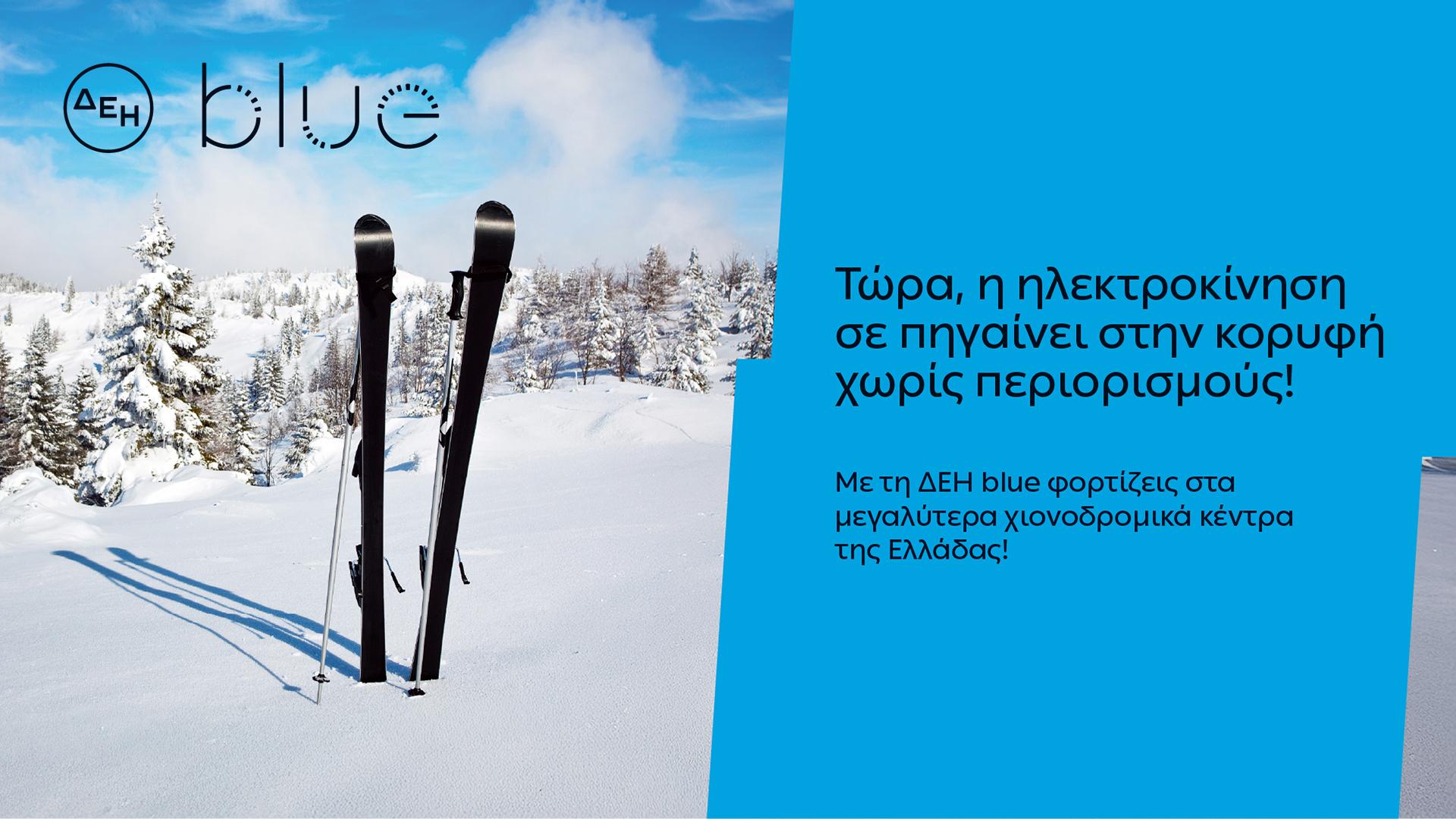 Συνολικά, 54 σημεία φόρτισης λειτουργούν στα επτά μεγαλύτερα χιονοδρομικά κέντρα της χώρας, στο πλαίσιο ανάπτυξης του δημόσια προσβάσιμου δικτύου φόρτισης της ΔΕΗ blue, καθώς και της ενίσχυσης των υποδομών ηλεκτροκίνησης σε ορεινούς και χειμερινούς δημοφιλείς προορισμούς. Η επέκταση του δικτύου αφορά τα χιονοδρομικά κέντρα Παρνασσού, Βόρα, Βασιλίτσας, Ζήρειας, Καλαβρύτων, 3-5 Πηγαδιών και Σελίου.