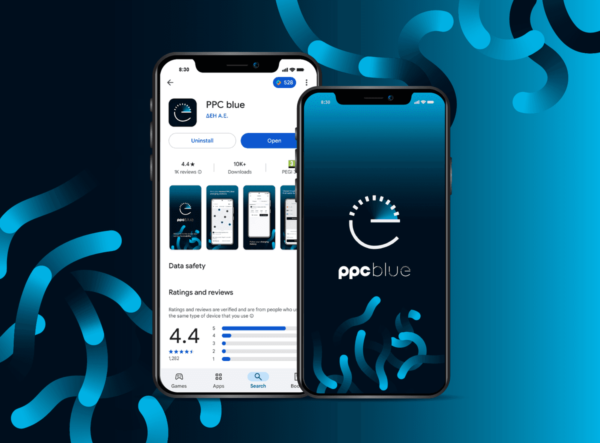 Εγκαταστήστε εύκολα την εφαρμογή PPC blue από το Google Play ή το App Store και αποκτήστε πρόσβαση στο μεγαλύτερο δίκτυο φορτιστών σε όλη την Ελλάδα.