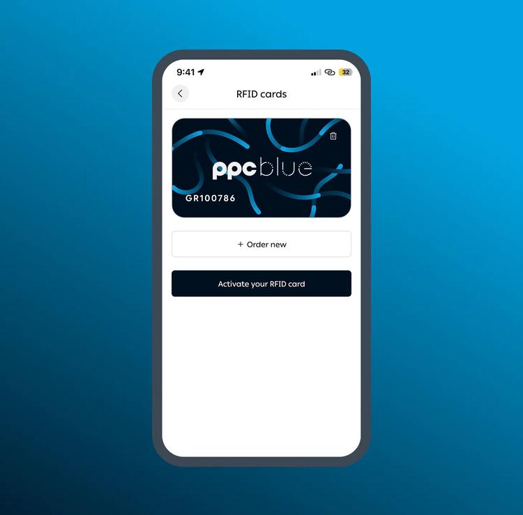 Open the PPC blue app, go to “Profile” > “RFID cards” and choose “Order new”.